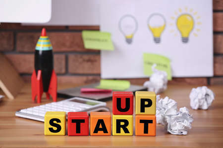 Start Up Word Written on Wooden Cubes