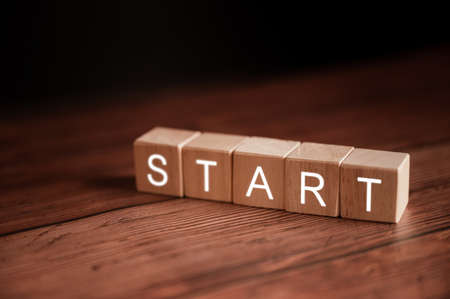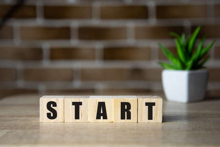 Text START on wooden cubes. Ideas for starting investments and starting a business.