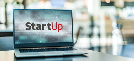 Laptop computer displaying the sign of StartUp