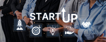Start Up Business of Creative People conceptual - Modern graphic interface showing symbol of entrepreneurship, fund, and project plan to start a new small business by smart group of entrepreneur.