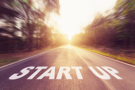 Start up printed on an old vintage typewriter. Panoramic image