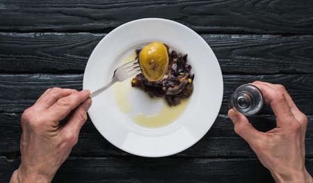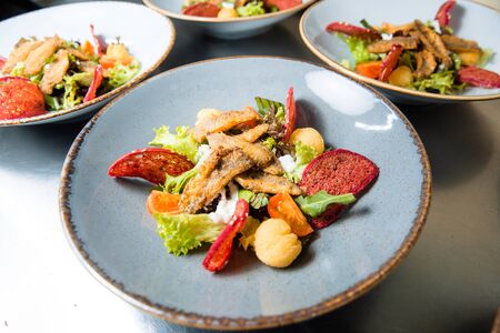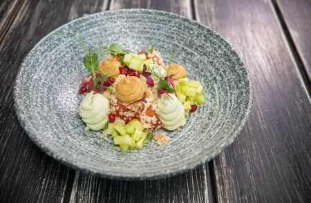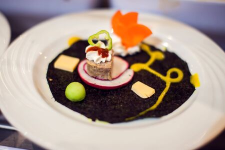 The food in the restaurant. Food styling and restaurant meal serving. Gourmet restaurant menu concept. Creative stylist restaurant