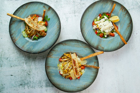 The food in the restaurant. Food styling and restaurant meal serving. Gourmet restaurant menu concept. Creative stylist restaurant