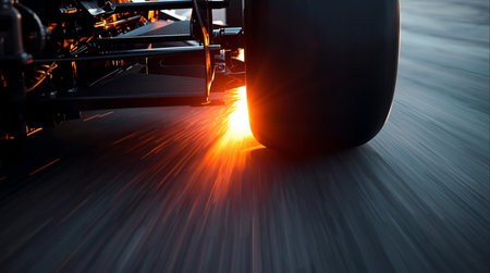 Close-up of the wheel of a racing car with sparks. 3d rendering