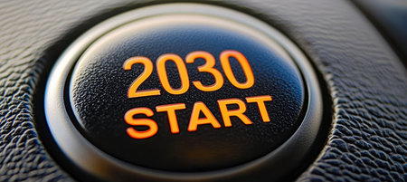 Futuristic Engine Start Button Featuring 2030 Text, Representing Innovative Automotive Design