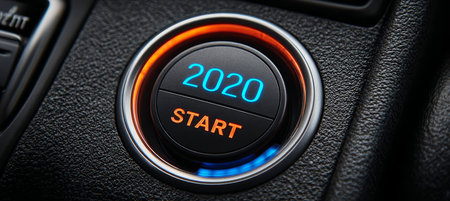 Futuristic Dashboard with Illuminated Ignition Button Displaying Year 2026 for Modern Vehicles