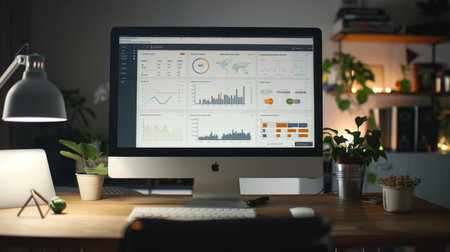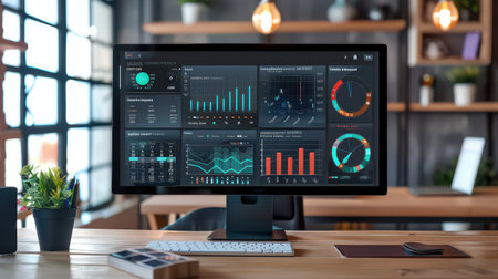 A desktop computer displaying a detailed business graph dashboard, with customizable features for tracking key performance indicators.