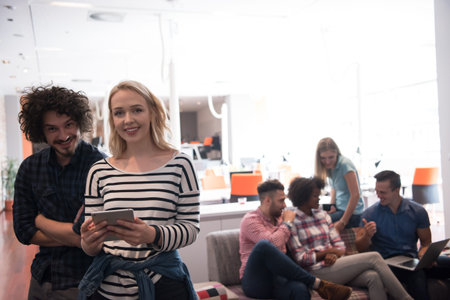 Young people in co-working creative space - Youth millennial generation and business technology concept
