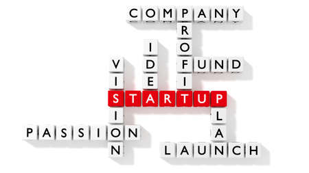 Crossword puzzle showing startup keywords as dice on white business concept flat design 3D illustration