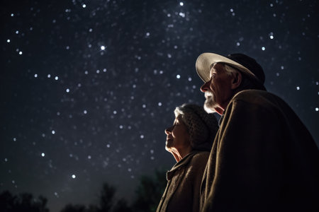 shot of a senior couple looking at the stars, created with generative ai