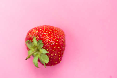 Fresh red strawberry on pink background. Close up photo.