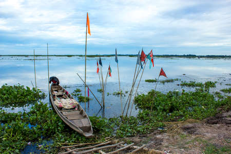 Fishing boat on the river at Sangkhlaburi, Kanchanaburi, Thailand