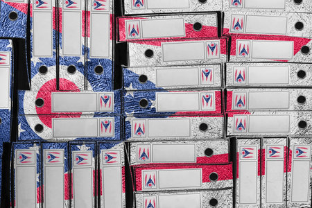 Ohio Flag Colors Folder Stack, Bureaucracy and Government Administration Concep