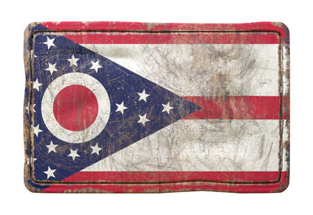 3d rendering of a Ohio State flag over a rusty metallic plate. Isolated on white background.