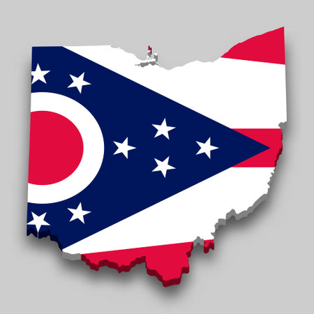 3d isometric Map of Ohio is a state of United States with national flag