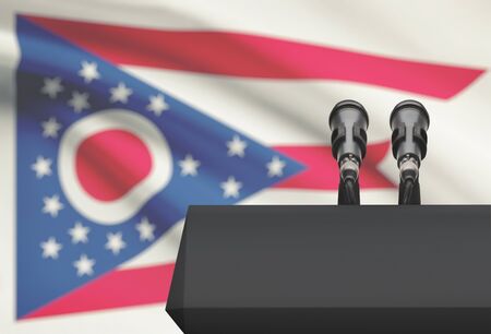 Pulpit and two microphones with US state flag on background - Ohio