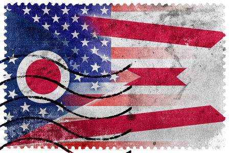 Ohio USA flag on old postage stamp, vector