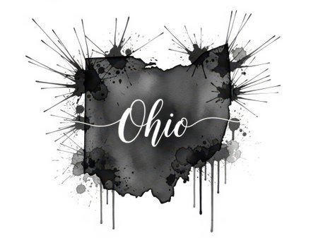 Ohio heart shape with splatter art design isolated on white background