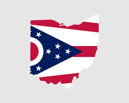 Ohio Map Flag. Map of OH; USA with the state flag. United States; America; American; United States of America; US State Banner. Vector illustration.