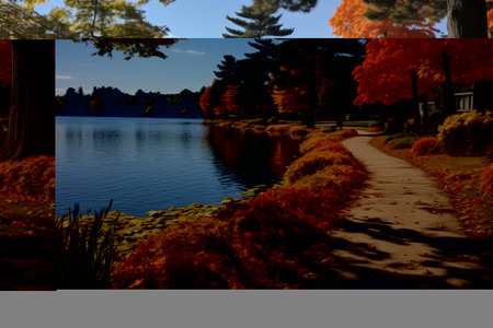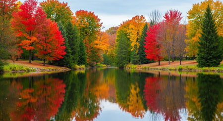 Tranquil lake reflecting the vibrant colors of autumn foliage, creating a picturesque scene of nature's beauty