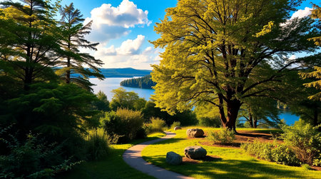 Lush trees and grassy landscapes in the park