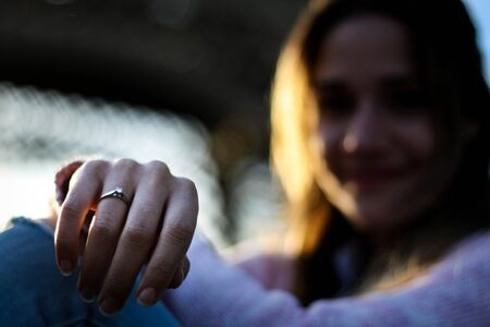 Blurred women portrait showing her engagement ring