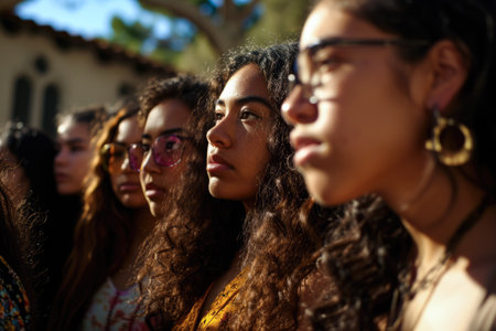 A vibrant tableau unfolds as people from diverse nationalities gather, representing a harmonious blend of cultures, backgrounds, and ethnicities, celebrating the beauty of multiculturalism and unity