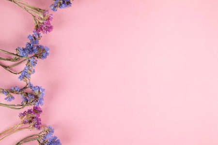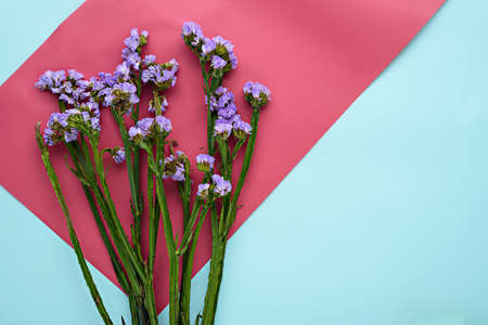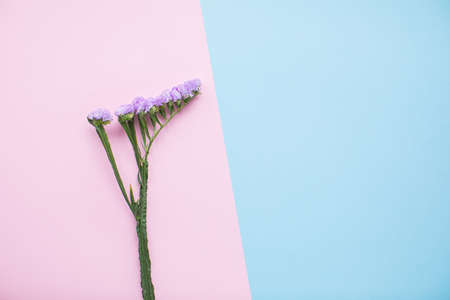 limonium flower on pink blue background with copy space