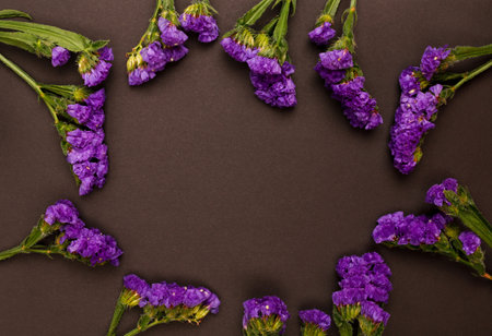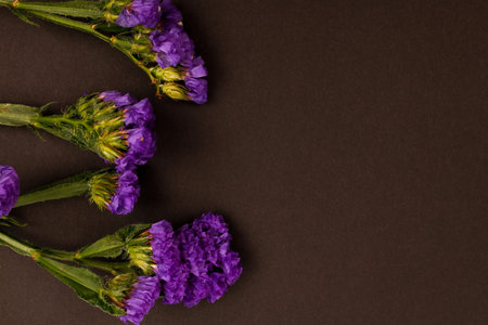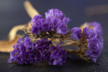 Kermek on a dark gray. The statice plant for bouquets and dried flowers. Background with copy space.