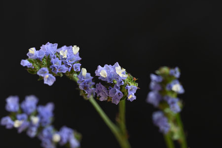 Close-up of tender small Limonium flowers of purple and light blue colors growing in bunch