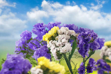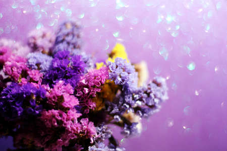 Bouquet colorful flowers Limonium or Statice (sea-lavender, caspia or marsh-rosemary)