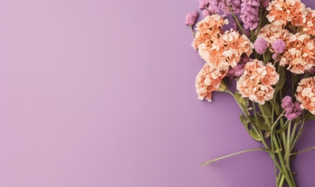 Delicate carnations, exuding elegance and tranquility on purple background. AI Generative