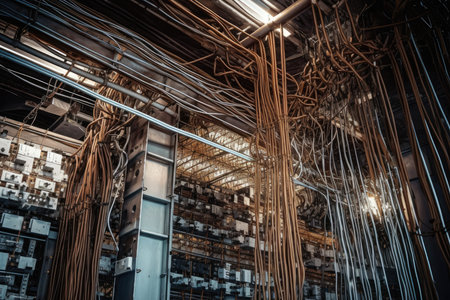 AI Generated. Sturdy steel cables suspended on industrial wind walls
