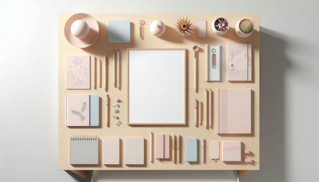 White stationery branding, stage layout on a soft colored background