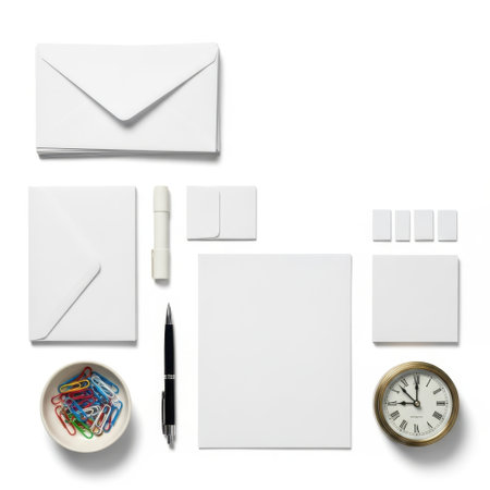 Office stationery items isolated on white background