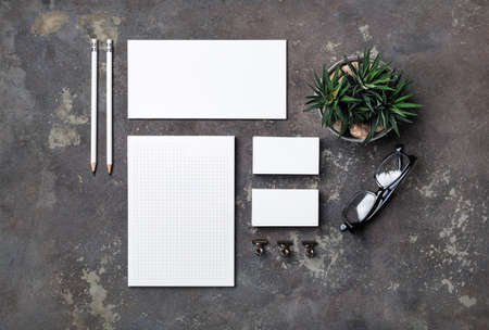 Branding stationery mockup. Blank objects for placing your design on concrete background.