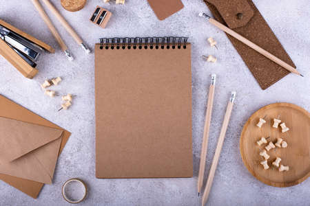 Eco wooden craft stationery. Sustainable life concept