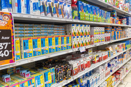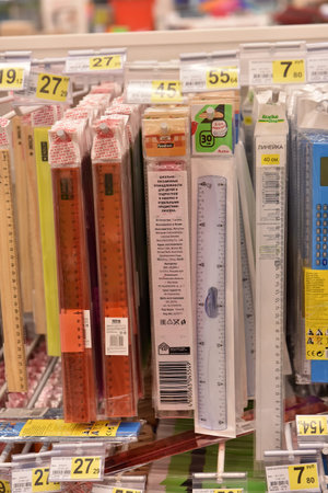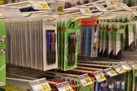 Russia, St.Petersburg, 22,07,2017 Stationery for the school year in the supermarket