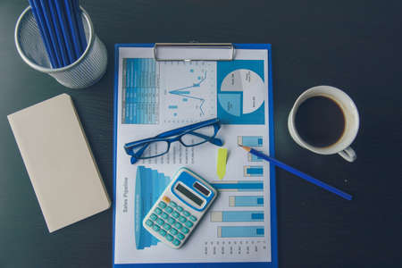 Charts Graphs paper. Financial development, Banking Account, Statistics, Investment Analytic research data economy, Stock exchange Business office company meeting concept.
