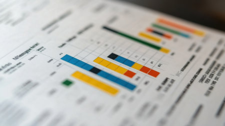Colorful financial report featuring detailed graphs and charts. Ideal for business professionals seeking insights into data analysis and performance metrics for informed decision-making.