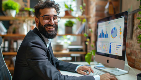 Office Worker Using Computer and Statistics Chart generated by AI