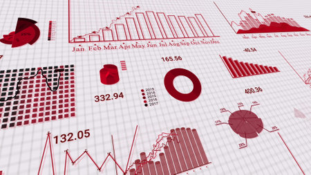 Stock market or forex trading red chart suitable for financial investment concept. Economy trend background for business idea. Stock market tickers with graphs charts and diagram.