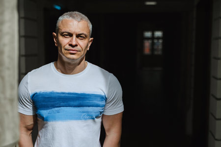 Confident mature male posing with a friendly expression, concept of stability and trust.