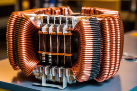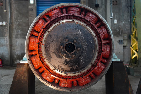 Fantastic electric motor in an industrial setting. The image captures the intersection of technology and craftsmanship in modern industry, highlighting the complex workings of the machinery that powers our world. Generative AI
