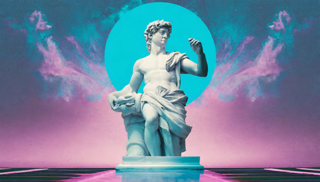 greek statue of david vapor synth retro wave background concept