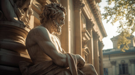 Generative AI, Stoicism concept, sculpture of a stoic, representing philosophy, ancient Greek god statue