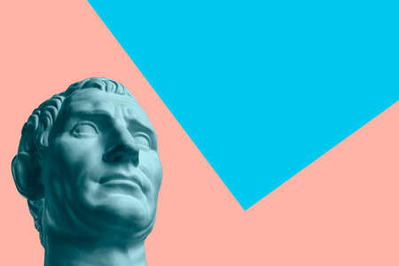 Contemporary art concept collage with antique statue head in a surreal style. Modern unusual art.