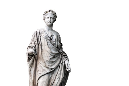 Marble statue of roman Ceres or greek Demeter isolated on white from the park of the Palace and park complex Estate of G. Galagan. Sokyryntsi village, Ukraine