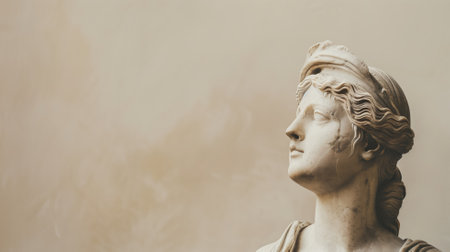 Capture the essence of classical art with this close-up of a marble bust featuring detailed hair and a graduation cap. Perfect for themes of education and culture.