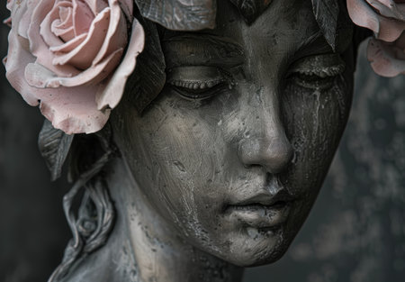 Close-up view of a marble statue, highlighting its detailed facial features and textures, softly illuminated to enhance the artistic expression and evoke a sense of history, AI generated